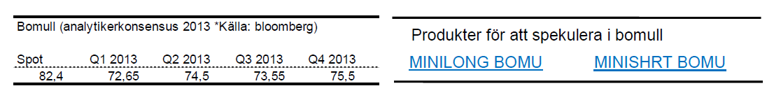 - Bomull befinner sig i en kortsiktigt positiv trend. Sedan oktober förra året är bomull upp dryga 20 %.