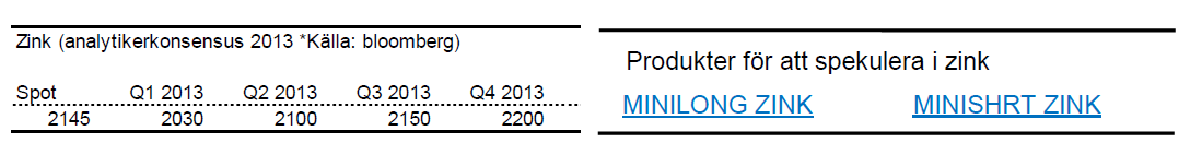 - Rapporter indikerar på en lägre produktionssiffra under 2013. Någon som kan få priset på zink att klättra ytterligare.
