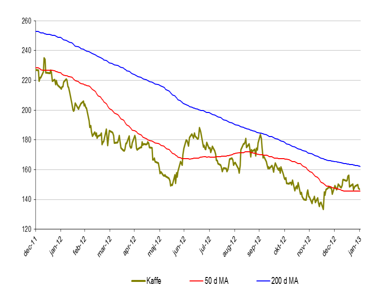 - Kaffe utvecklades under januari svagt uppåt. + 0,6 %.