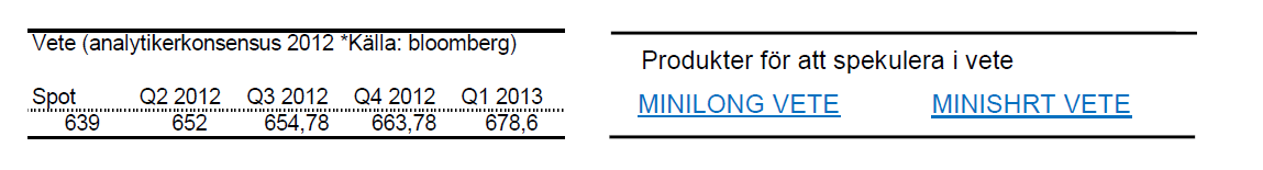 - För året är vete i det närmaste oförändrat.