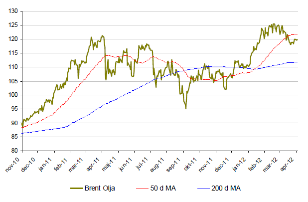 - Under april månad har dock Brent-oljan tappat 3 %.