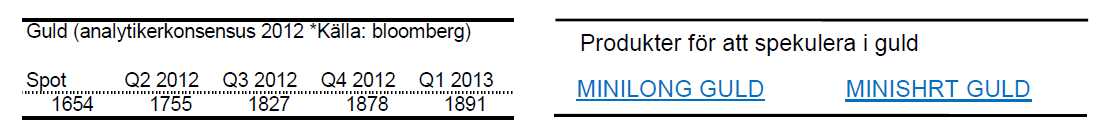 - Reuters publicerade i april sin guldundersökning. Där förutspås en guldkurs som fluktuerar i ett stort spann men som ligger något över dagens nivåer vid årets slut.
