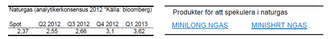 - Naturgas har under april månad utvecklats väl. För månaden upp ca 6 %.