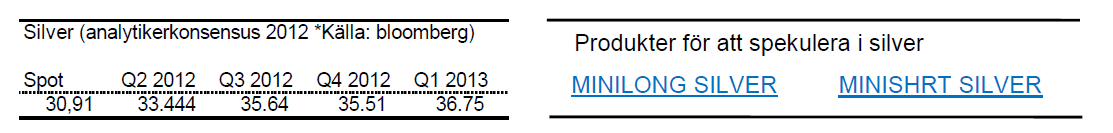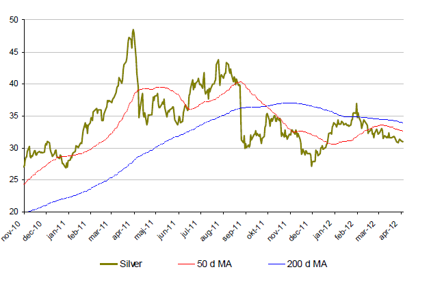 - Den europiska kreditkrisen i kombination med rädsla för minskad kinesisk tillväxt bidrar till de negativa sentimenten i silver.