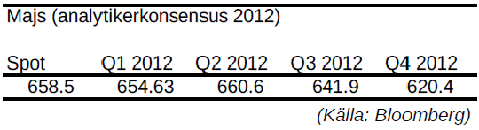 - Majs konsoliderar mellan 580 och 670 cent /bushel. Nu börjar majs närma sig motståndet på 670 cent. Frågan är om det bryter upp eller vänder ned.