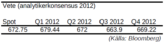 - Produktionen väntas överstiga konsumtionen under 2012.