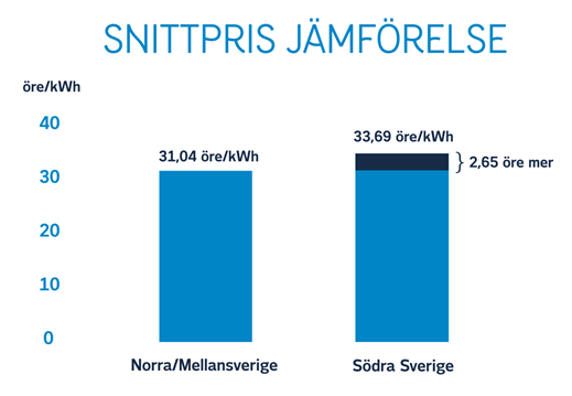 I Sverige låg snittpriset i elområde 1, 2 och 3 på 31,04 öre/kWh och i elområde 4 (södra Sverige) på 33,69 öre/kWh i november.