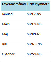 *2 avser årtalet, vilket betyder att tickern SB/F2-NS avser leverans av socker i januari 2012.