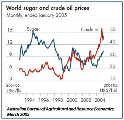 Då socker är en bra källa för etanolframställning tenderar också oljepriset och efterfrågan på etanol att påverka det internationella priset på socker, något som var särskilt märkbart till exempel under första halvåret 2008 då sockerpriserna ökade med mer än 20 % som svar på de stigande bensinpriserna.
