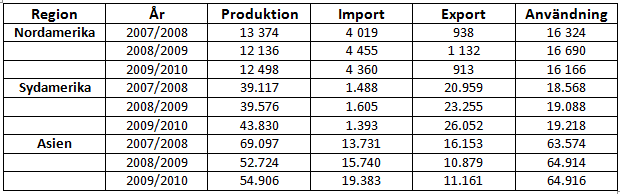Socker Import / Export i Nordamerika, Sydamerika och Asien