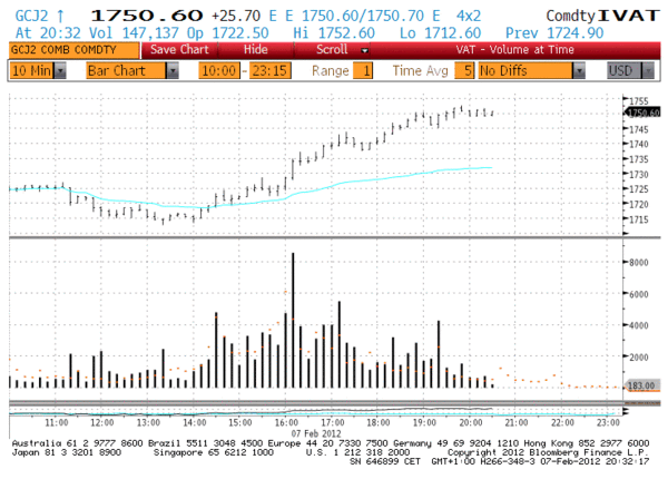 Under tisdagen den 7 februari 2012 var intresset för att köpa guld betydande. Inom loppet av bara några minuter omsattes terminskontrakt med ett underliggande värde motsvarande 1/6-del miljard USD. Värt att notera är att under 2011 ökade mängden fysiskt guld med 1,6 procent medan pappersguldet ökade med 1.600 procent, en skrämmande hög siffra som visar på att det finns ett betydande intresse för att köpa guld, en bevarare av värde, när allt fler världsvalutor trycks upp i allt större omfattning.