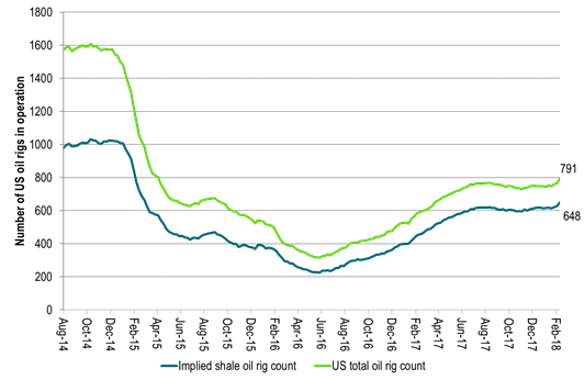 Chart 5: Rig count has moved sideways since August 2017 as players have focused on completions