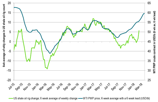 Our 2018 US crude oil production forecast of 10.7 m bl/d which six months ago was seen upon as outrageously high now suddenly looks like it is going to be on the weak side instead. We still see the global oil supply/demand balance in deficit for 2018 if OPEC & Co stays on course. Oil production in Venezuela dropped 70 k bl/d/mth in February to 1.55 m bl/d (down 480 k bl/d y/y) which is an even steeper drop than we have assumed. This helps to counter the strong rise in US crude oil production and thus keep our projected sup/dem balance for 2018 at around 0.3 go 0.4 m bl/d deficit.