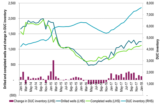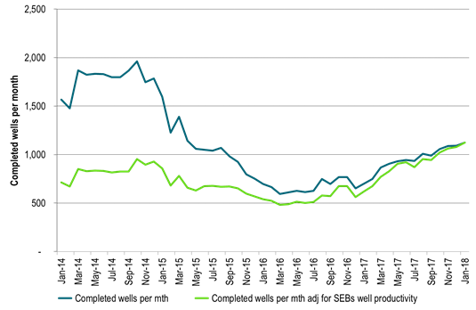 Chart 5: Rig count has moved sideways since August 2017 as players have focused on completions