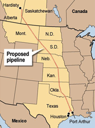 Keystone XL är en planerad pipeline som skulle löpa från Edmonton, navet i Kanadas enorma oljesandsindustri, genom Montana, South Dakota, Nebraska, Kansas, Oklahoma och Texas, till Houston och den amerikanska Gulfkustens raffinaderier.