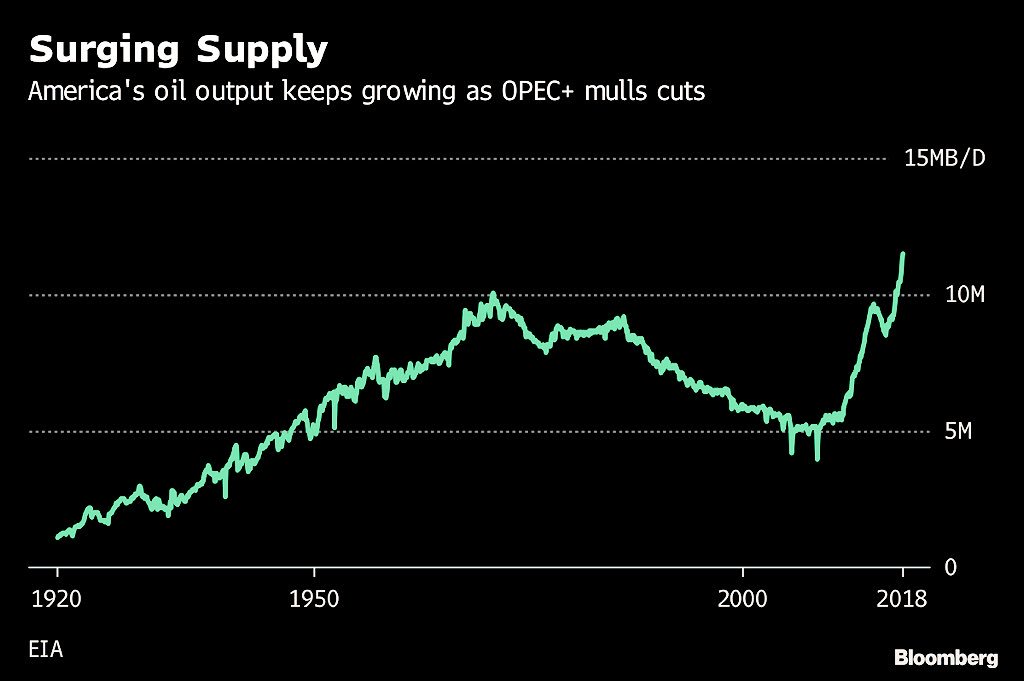 Vi skrev nyligen om att USA blivit världens största oljeproducent och nu står det klart att man behåller positionen även månaden efter. OPEC+ har nu börjat prata om att begränsa produktionen av olja för att få upp priset, en sammanslutning som USA inte ingår i, vilket pekar på att USA inte kommer att tappa förstaplatsen den närmaste tiden. USAs oljeproduktion har ökat med 20 % på ett år och slog ett nytt rekord i september då företagen i landet producerade 11,475 miljoner fat per dag enligt IEA. De amerikanska oljeproducenterna hoppas nog att OPEC+ minskar produktionen då de lägre priserna vi nu ser gör att det fria kassaflödet för en hel del av företagen snabbt försvinner.