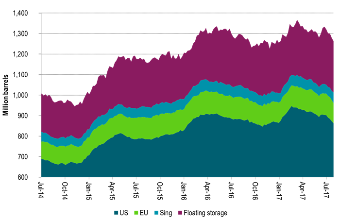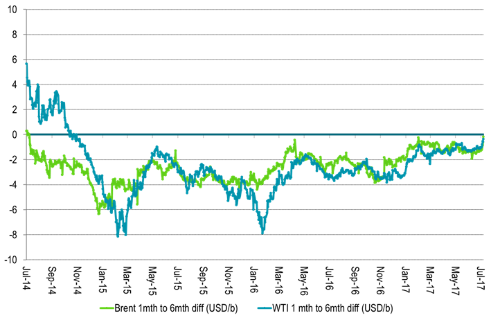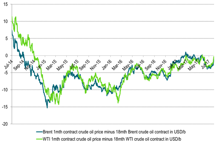 The crude oil inventory draws taking place at the moment are of course real and they will draw down more during H2-17. Still it is important to remember that they are artificially managed by a 1.8 mb/d cut by OPEC and some non-OPEC members. Currently they help to draw down invnetories and to flatten curude curves. When needed however, the volumes will be put back into the market some time in 2018 or 2019.