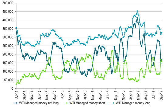 However, we think there will be plenty of oil in 2018 with the need for OPEC+ to hold cuts through all of next year. Thus a bounce in crude oil prices near term should be utilized as an opportunity to hedged 2018 for the natural sellers, the producers. A new round of hard hitting hurricanes approaching the U.S. Gulf thus creating supply disruption risks could be the catalyst for such a bounce. A new and slightly longer set-back in Libya’s crude oil production could be another one. Producers and natural sellers should stay ready to utilize such a bounce.