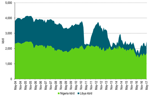 For the second half of 2017 the IEA calculates that the market will need 33.4 mb/d of oil from OPEC, a full 1.3 mb/d higher than in H1-17 due to seasonal demand effects and refining maintenance seasonality. Maintenance of refineries has been unusually high so far this year. But these are now coming back in operation.