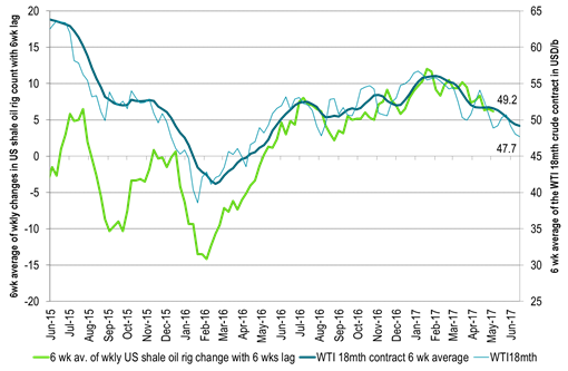In our view, while we have a more positive view of the supply/demand balance in 2018 than the IEA, we do not see the need for a single additional shale oil rig to be activated in the US over the next 12 months. In order for this to happen the WTI 18 mth contract needs to stay put at around $47/b over the next 6-12 months. Thus fundamentally, the WTI 18mth contract should not rise above the $47/b level over the next 12 months.