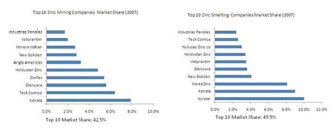 Nedan har vi listat ett antal av de företag som är verksamma på zinkmarknaden, vare sig det är gruvföretag, smältverk eller sådana bolag som är vertikalt integrerade och verksamma inom flera delområden.